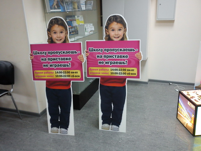 Ростовые фигуры – то есть штендеры вырезанные и подготовленные под заданную фигуру. Наиболее интересны с точки зрения маркетинга. Хорошо привлекают посетителей и запоминаются, разумеется, при качественном исполнении. Ростовые фигуры могут быть одно и двусторонними. Поверхности изготавливаются из вспененного пластика, внутренний каркас из металлической квадратной трубы.