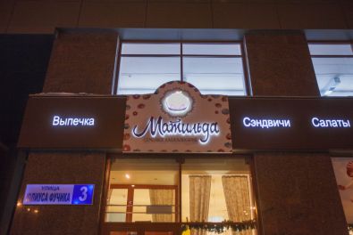 Вывески с объемными буквами с подсветкой контражур. Данный тип вывесок характеризует тип изготовления, когда диоды помещаются внутрь непрозрачных элементов вывески и свет направляется на основу, тем самым подсвечивая обратную сторону объемных букв или других элементов.